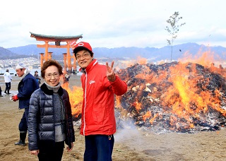 今年も恒例の厳島神社とんどへ行って来ました。 強く燃え盛る火炎を浴びて、病を患った友人の奇跡的な快復を祈願しました。 もちろん家族の無病息災、商売繁盛、世界平和、そして孫の希望校合格、カープ日本一も ‼ 欲張り過ぎ ⁉ |