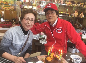 誕生日は13日と18日。その間の今日日曜日、パートのみなさんがバースデーケーキを買って来てくれて祝ってくれました。