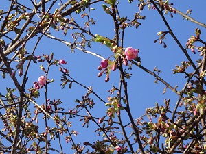 昨年が2月11日。今年は暖冬で開花は早いかと思いきや・・。
