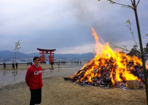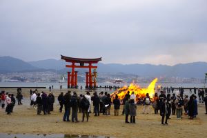 今年の「とんど」は午後3時から。厳粛な神事のあと高く炎が舞い上がりました。無病息災、世界平和、希望校合格、
