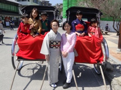 2015/03/31 着物でお花見 3月30日 朝、TSSのテレビ中継が平野屋であり、亜里沙ちゃんと聖奈ちゃんが着物姿で登場。その他はチラッと・・!?。 午後からはみんなで人力車に乗ってお花見に。一気に満開になった桜を楽しみました。
