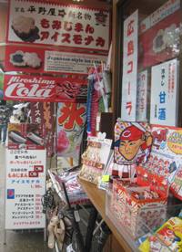 2015/05/11 新看板とカープグッズ 5月10日 もみじまんアイスモナカの看板の下に英語バージョンを、その下に同じく英語で広島コーラ、かき入りグラタンロール・お好み焼きロールも英語で表記、店内の商品も英語表記が増えています。 店頭にはカープの鯉のぼりにカープ関連商品も並べてカープを応援! そのせいかカープの調子も絶好調に!!