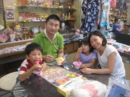 2015/08/15 平野屋のかき氷 8月15日 今日パパが上海から帰って来て久しぶりに家族団らん。みんなで平野屋のかき氷を食べました。 海で遊んで川で遊んで、夜は焼き肉パーティーに花火。明日はプール、宮島の夏を満喫します。