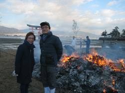 2016/01/14 恒例のとんど 1月14日 今年も夫婦でとんどに行って来ました。今年は汐の関係で朝早くから始まりましたが、カメラマンも大変寒い中たくさん来られていました。 帰りには当店のほっかほかの甘酒で冷えた体を温めていただきました。
