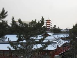 雪の朝、五重の塔も多宝塔も朝日が射して